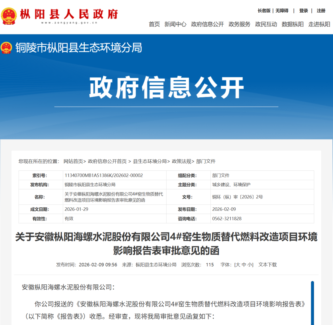 近日,铜陵市枞阳县生态环境分局正式批复《安徽枞阳海螺水泥股份有限公司4#窑生物质替代燃料改造项目环境影响报告表》,同意该项目按报告表所列建设性质、规模、地点及拟采取的环境保护对策措施进行建设。据悉,该项目位于枞阳县藕山镇安徽枞阳海螺水泥股份有限公司厂区内,在现有3#窑替代燃料库内新增1台破碎机,用于4#窑秸秆的加工破碎,同时依托3#窑稻壳输送系统,将稻壳输送至替代燃料库后,与4#窑破碎后的秸秆一同通过皮带输送系统送至计量仓,再送至分解炉内燃烧。同时对4# 水泥窑熟料进料口进行改造,建成年消耗15万吨替代生物质燃料系统,项目建成后将削减原煤使用量8004吨/年。 |